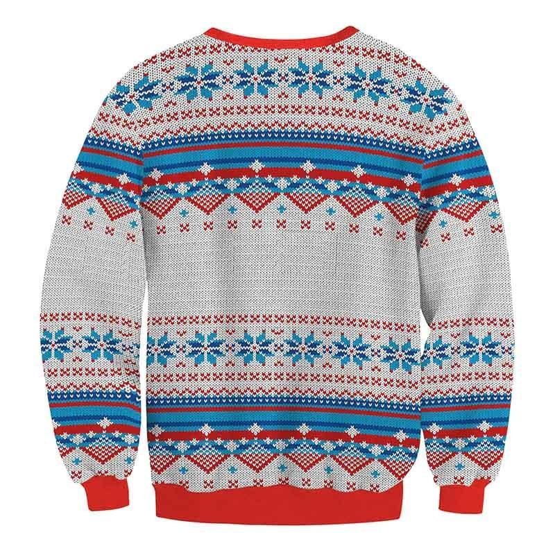 This Christmas style sweatshirt features Santa Claus, Christmas tree, snowflake and sock prints with O-neck and long sleeves styling. It’s perfect for Christmas season and also good for everyday basics.