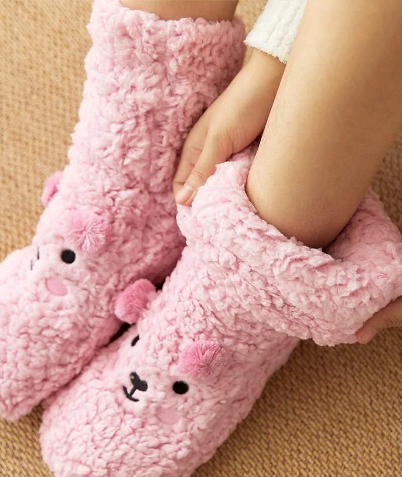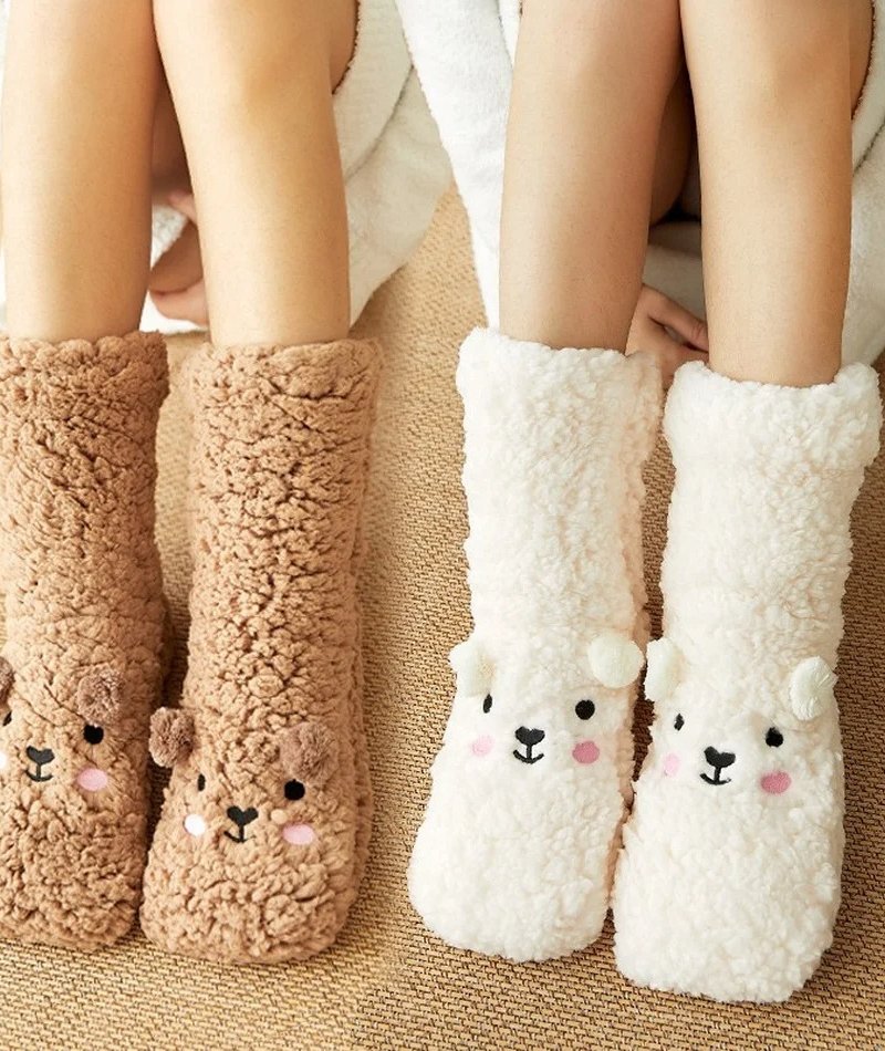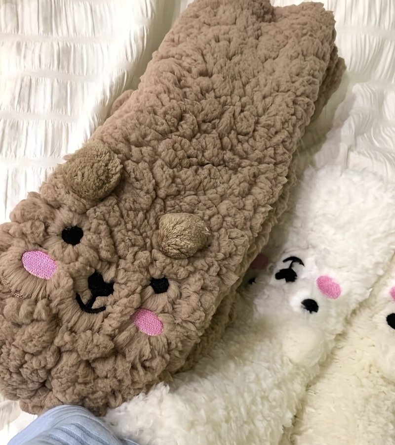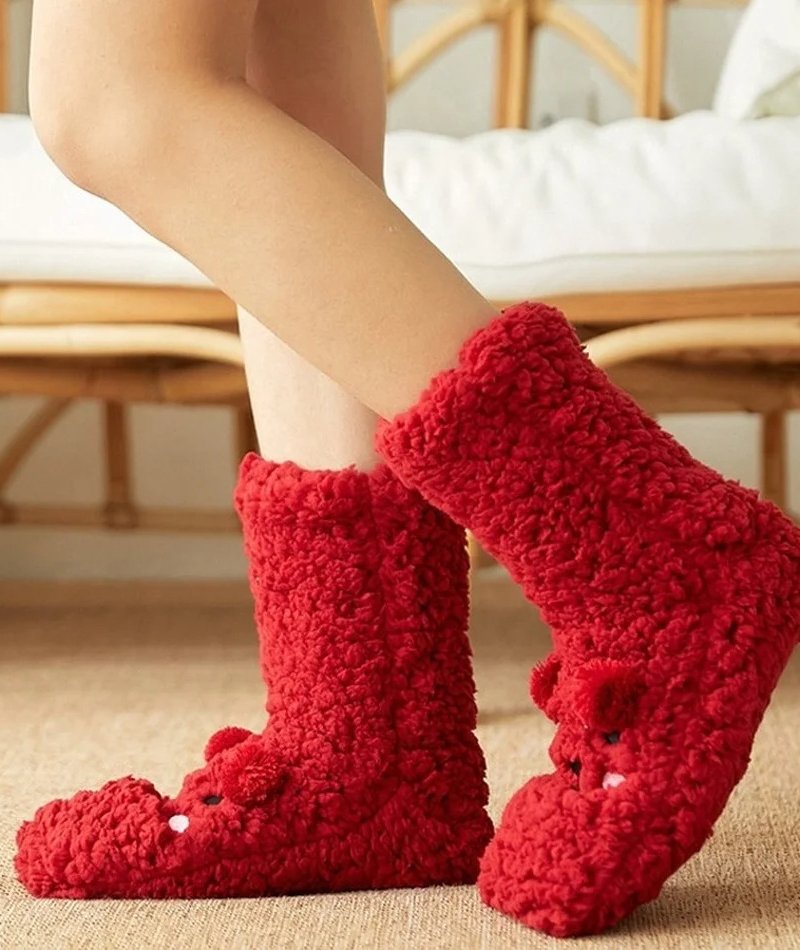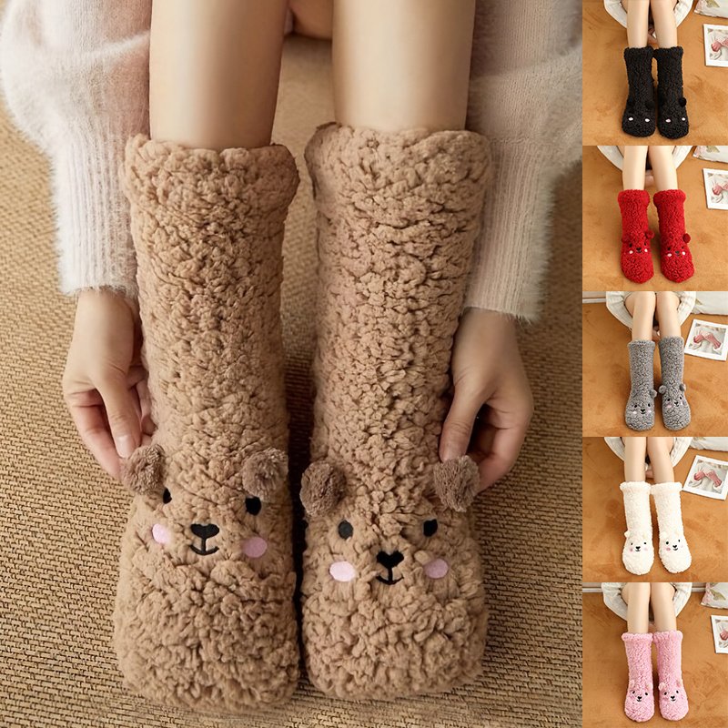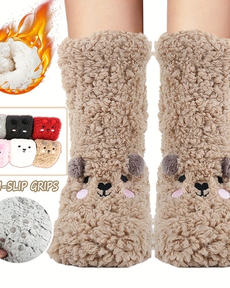 Cute Cartoon Bear Fuzzy Socks For Women, Comfortable Winter Soft Warm Slipper Socks, Casual Sleep Socks For Indoor Women’s Fuzzy Socks Winter Warm Fluffy Soft Slipper Home Sleeping Cute Animal Socks