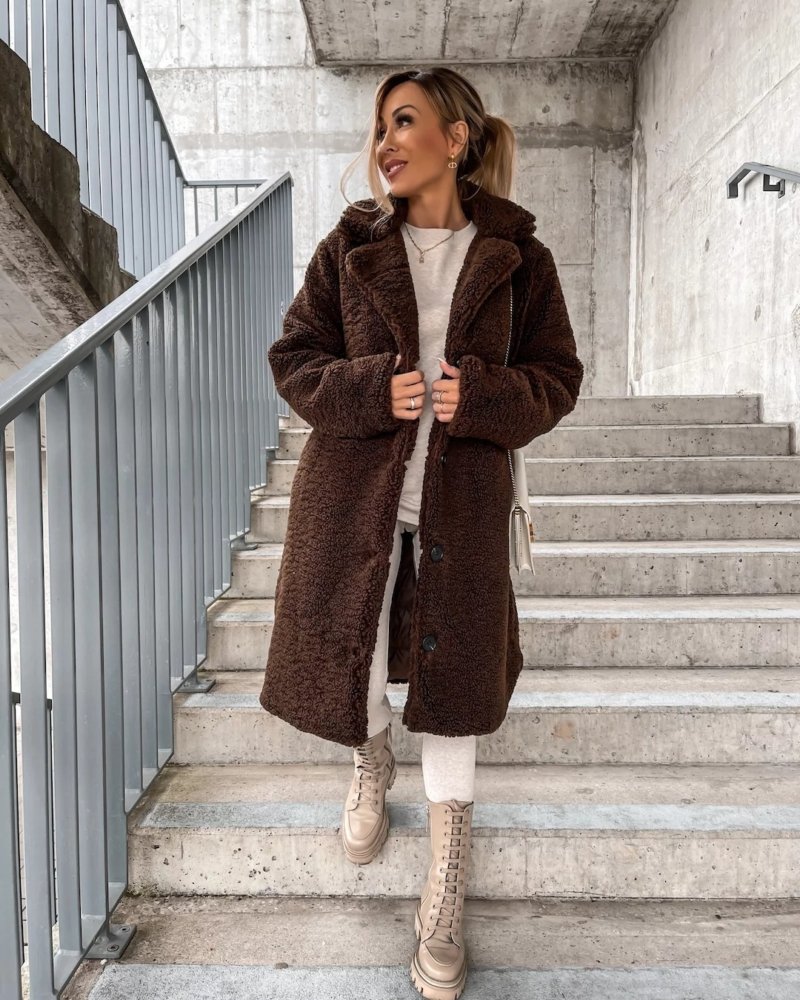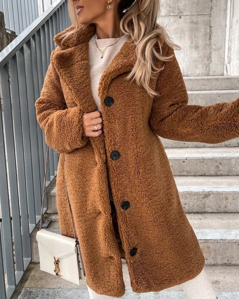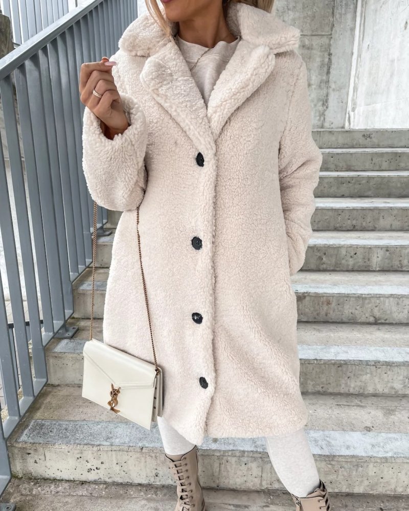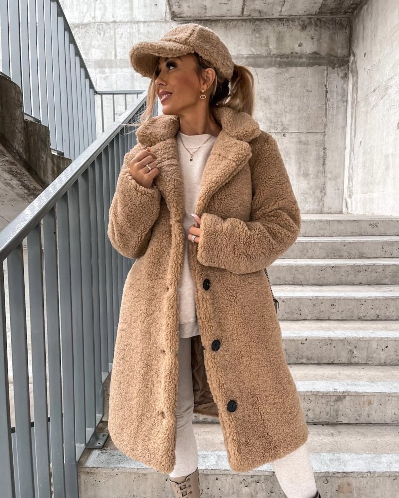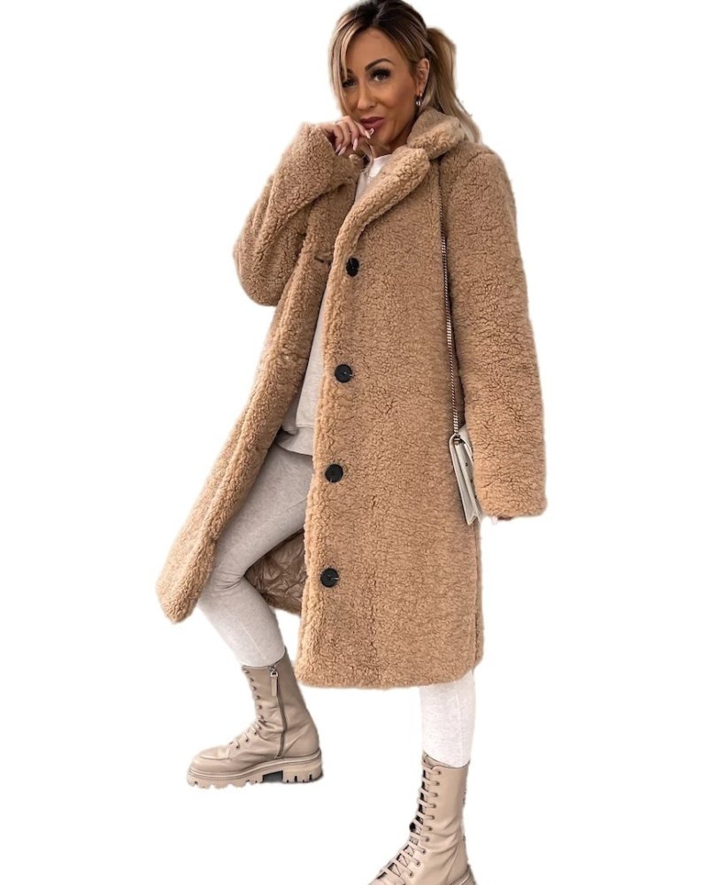 Long Sleeve Lapel Coat Lamb Wool Large Coat Women