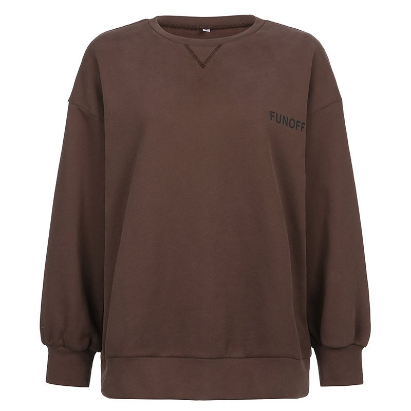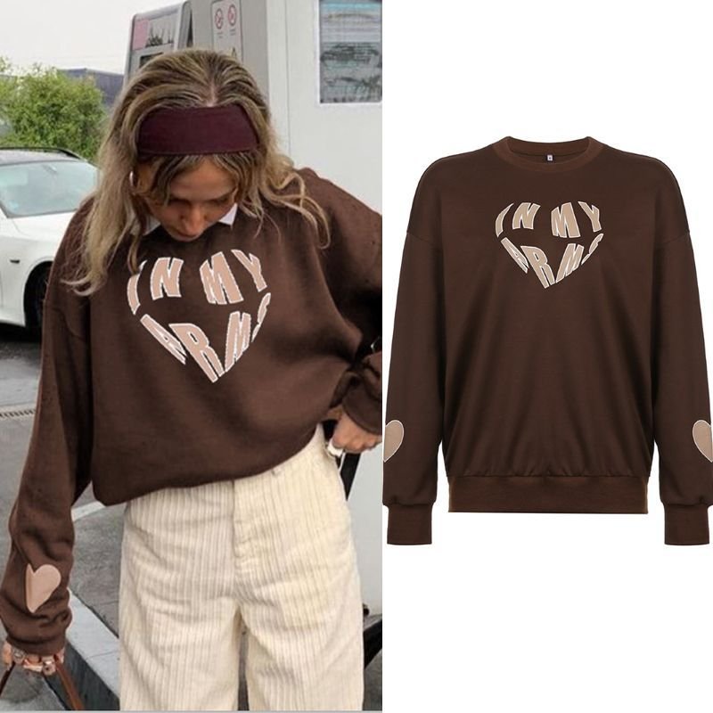 New women’s European and American style retro brown mushroom embroidery loose round neck sweater women’s casual pullover top