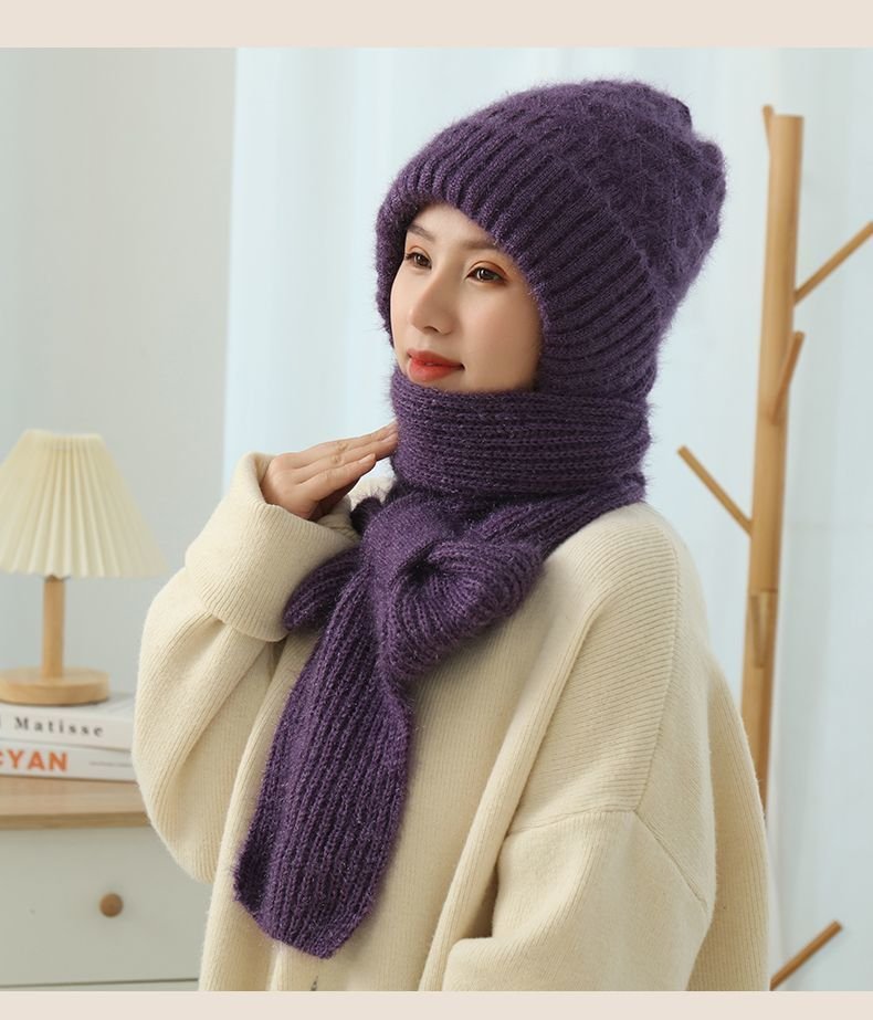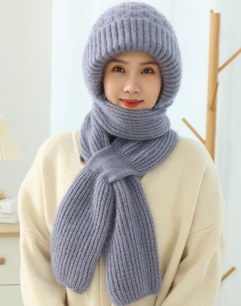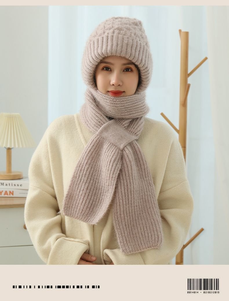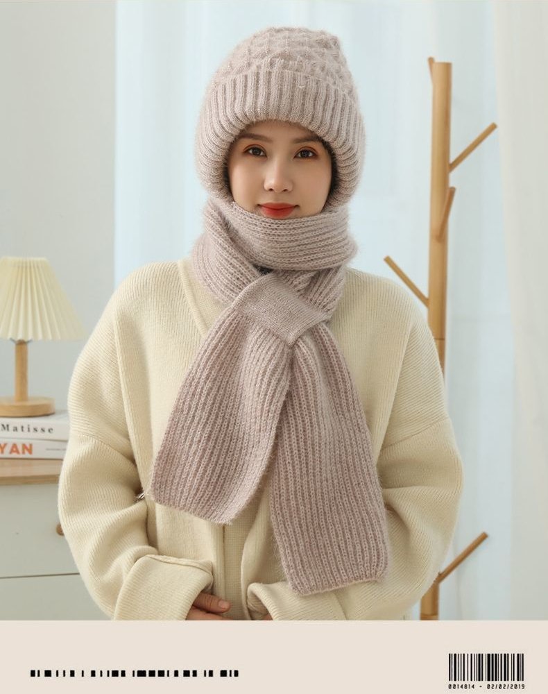 Women’s Fleece-lined Autumn And Winter Scarf Hat Integrated