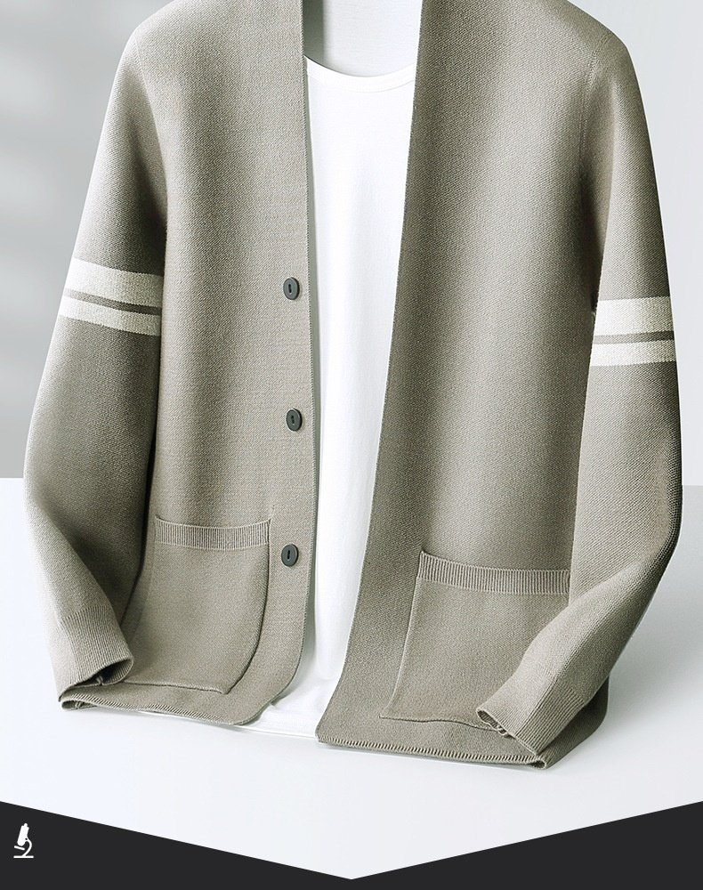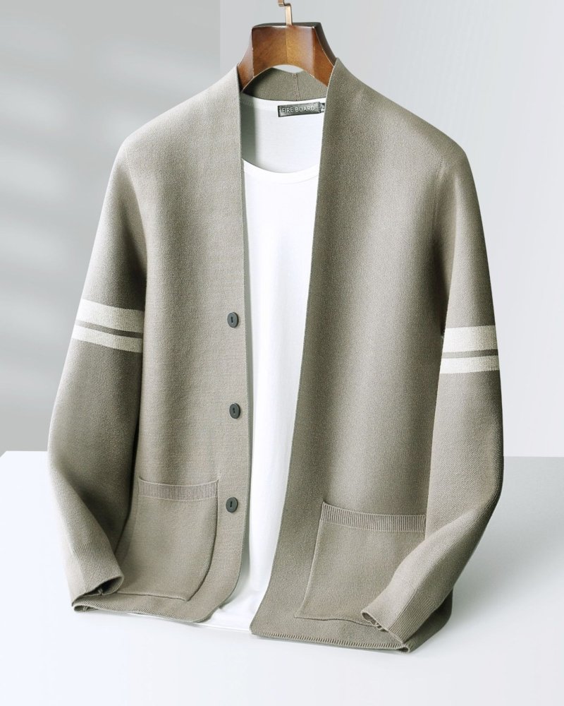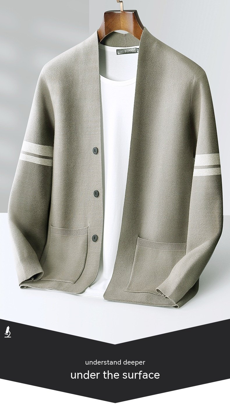 Wool Cardigan Male V-neck Knitted Color Matching Sweater Business Casual Loose Long Sleeve Cashmere Coat